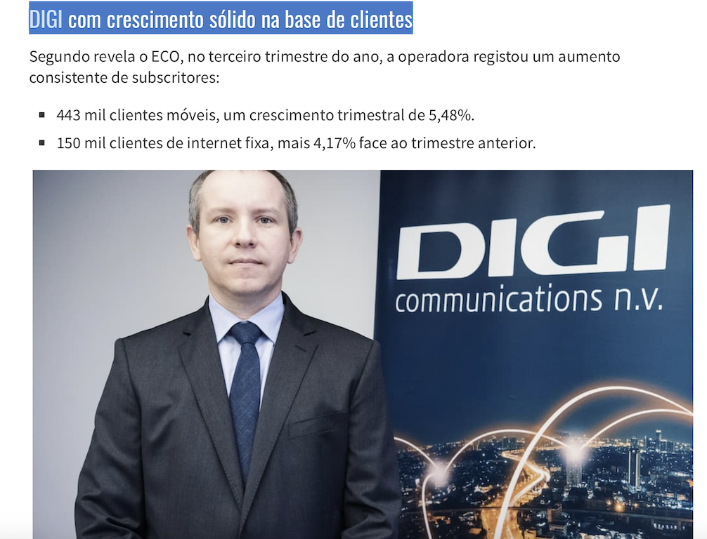 "Entre janeiro e setembro, a Digi Portugal alcançou 52,5 milhões de euros em receitas. No entanto, o valor é insuficiente para cobrir os gastos, que ascenderam a 88,2 milhões de euros no mesmo período, ou seja, 68% acima das receitas."