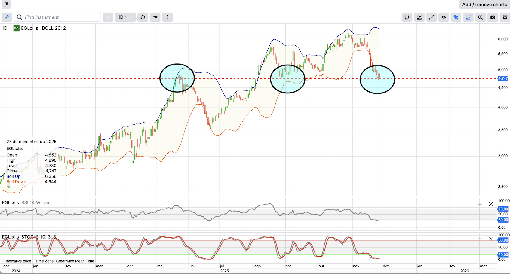 Sim, é bom ter cartuchos, mas não atiro antes das proximidades de 4.50. O RSI não está historicamente baixo e nunca houve tanta a posta a descoberto, portanto acredito que bate o histórico e o preço vai ao intervalo 4,50/4.60