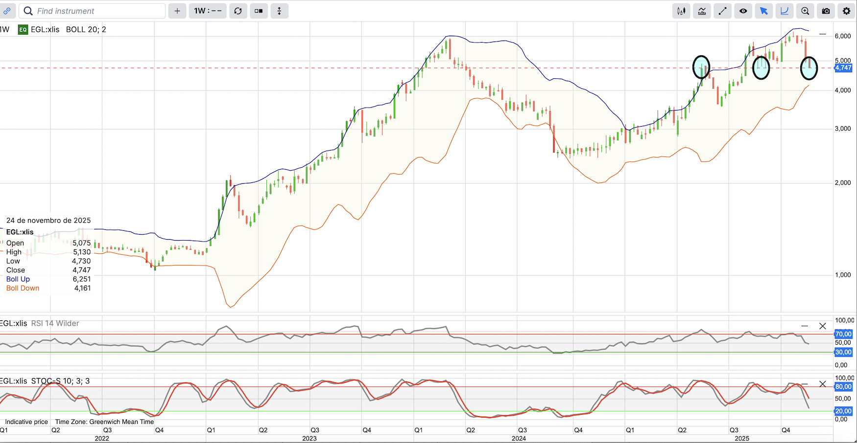 "Está o caldo entornado na Mota, partiu um suporte - mas poderemos assistir a um rally de Natal. Acreditamos na possibilidade de ir aos 4,60€, mas também podemos ir rapidamente aos 6€."