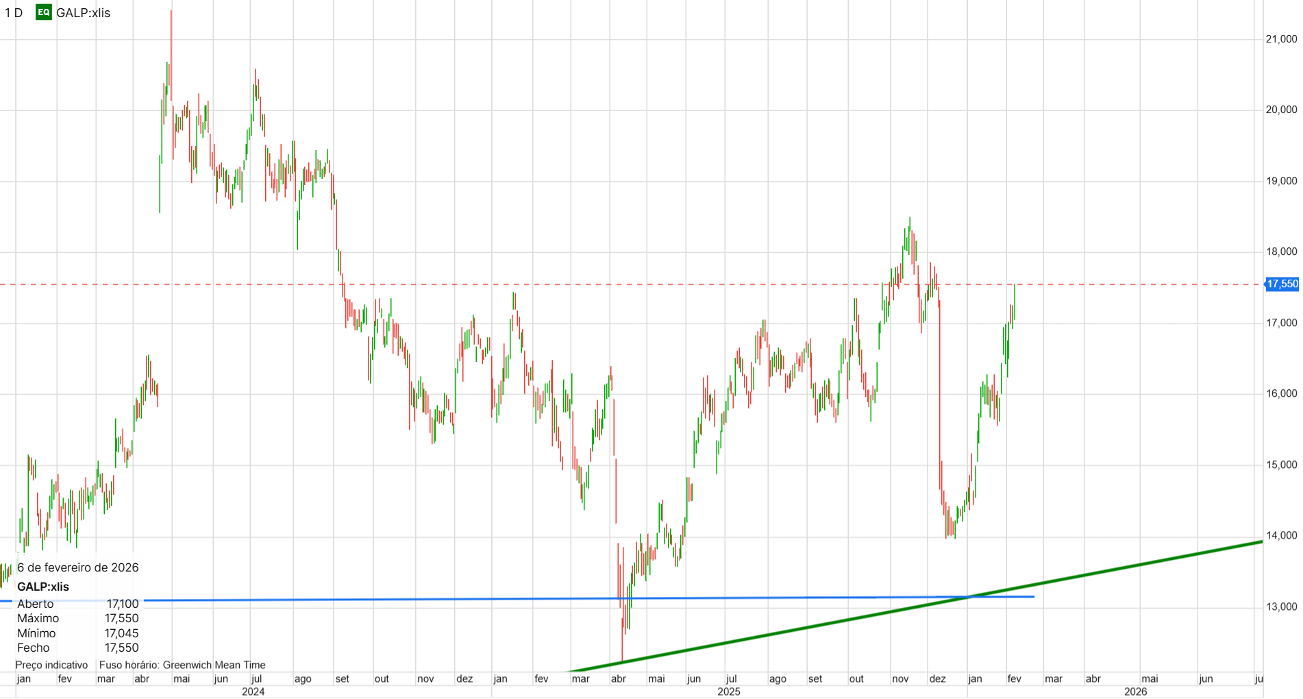 A Galp não irá corrigir por motivos técnicos sem as congéneres americanas e europeias o fazerem também. Dada a rotação de capital institucional do software para ativos físicos, creio que qualquer correção passará por uma mera consolidação (salvo uma queda mais abrangente nos mercados, o que também é comum em ano de mid-terms).