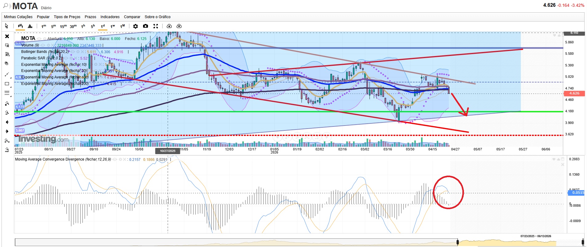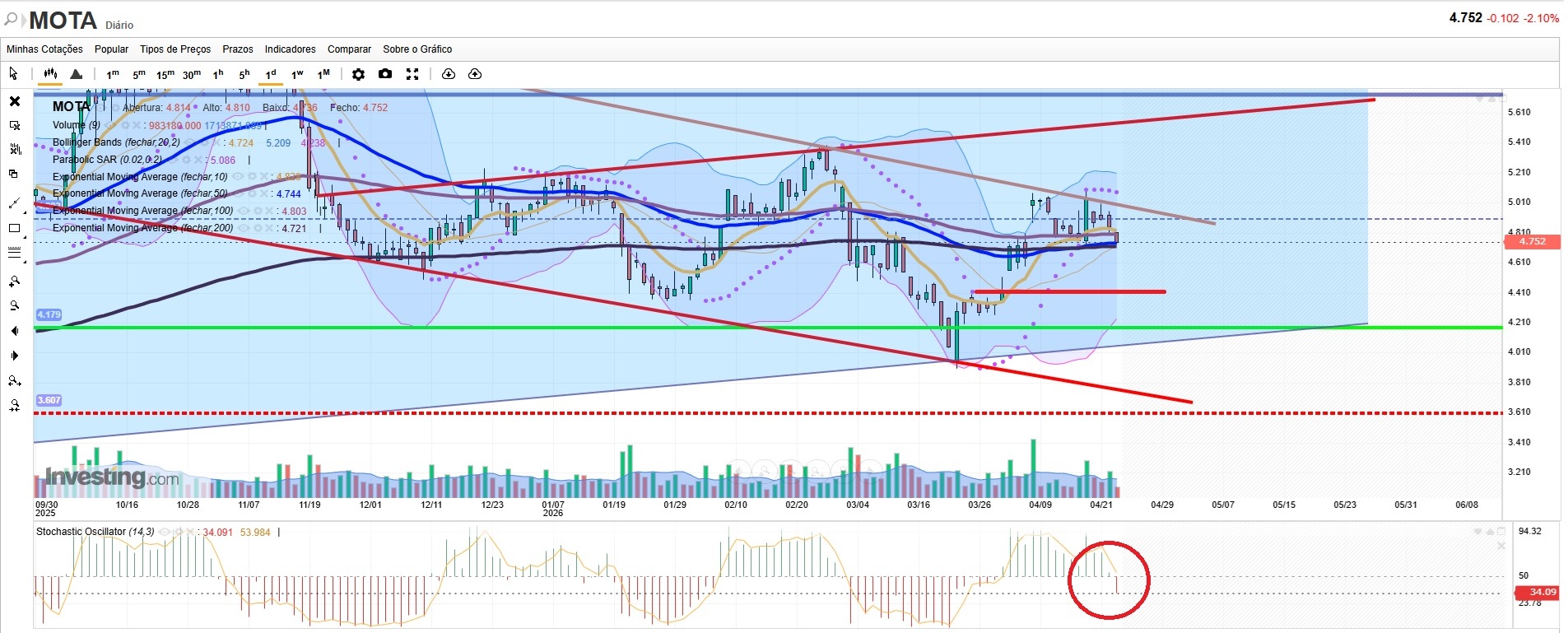 Apenas uma curiosidade, a Mota está dentro de um canal ascendente desde novembro de 2024 e formou um canal descendente desde outubro de 2025.