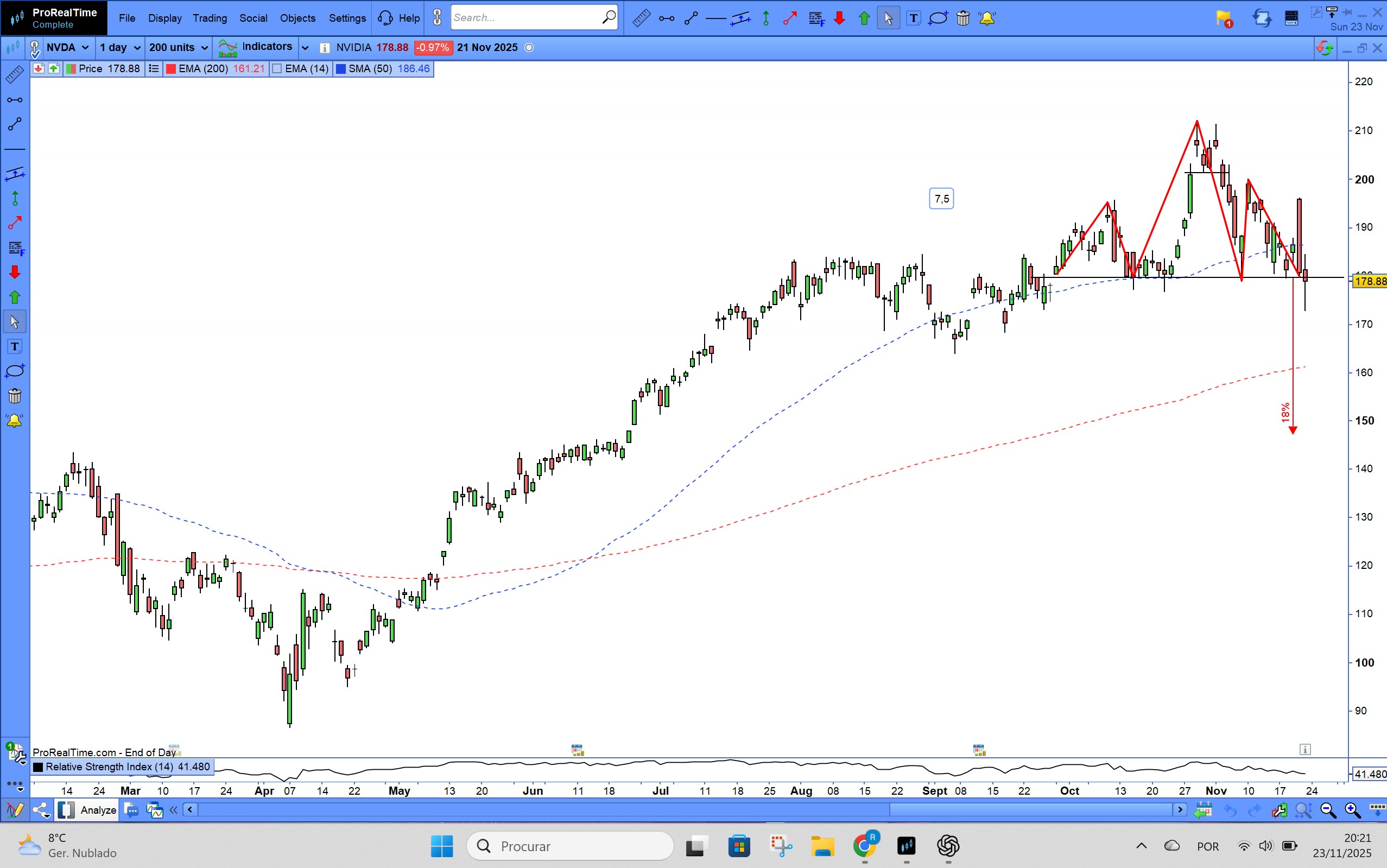 A Nvidia , que tem o maior peso no indice tambem esta com um H&S